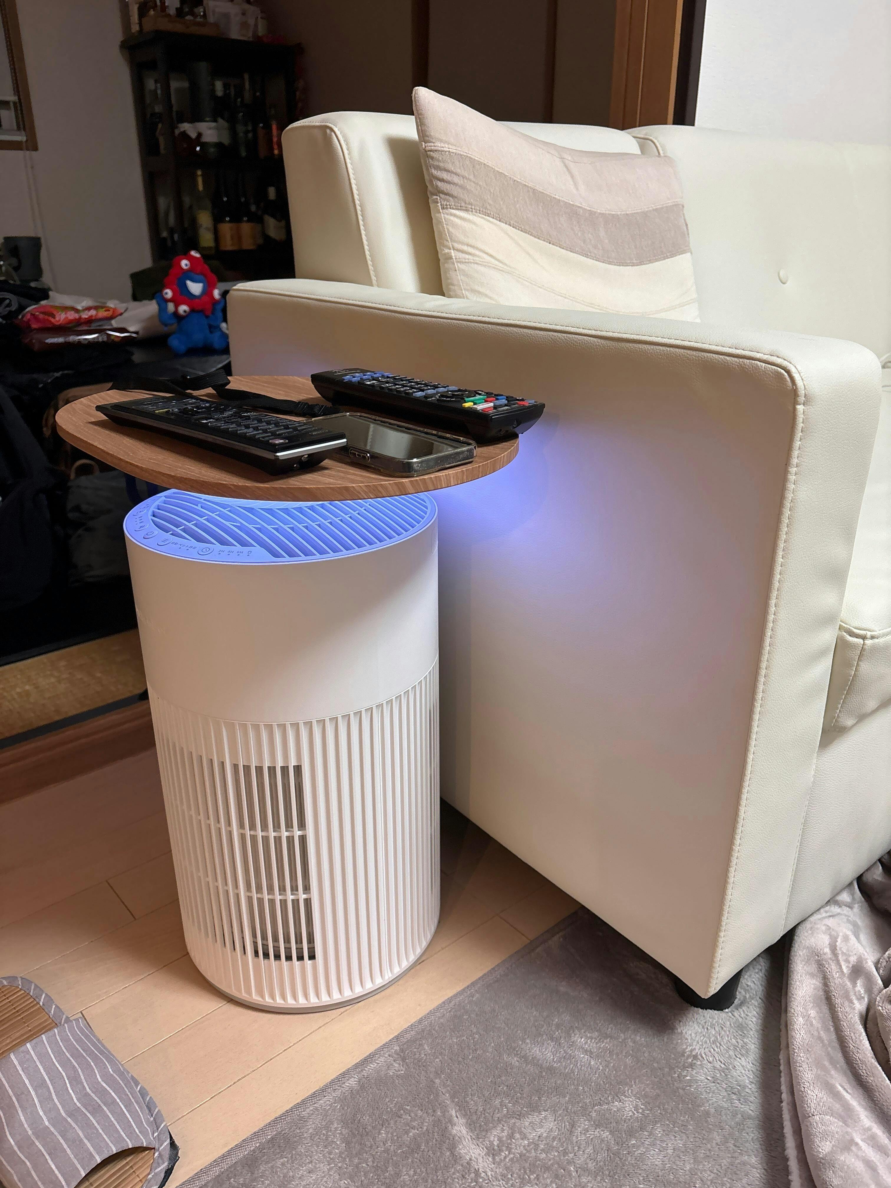 サイドテーブル、ムードライト、ワイヤレス充電器としても使える、4つの機能を1台に詰め込んだ、空気清浄機です。