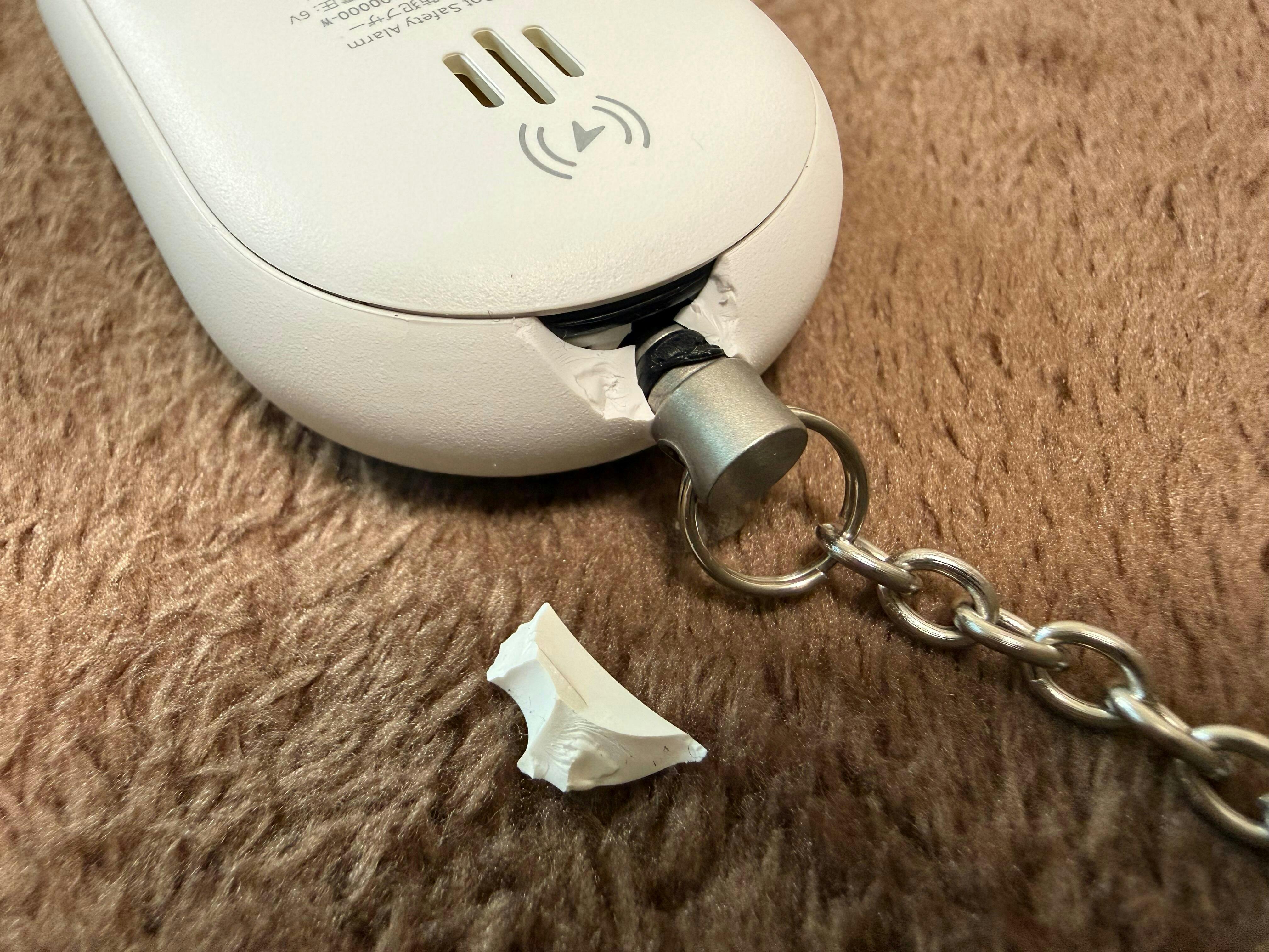 いざという時は、「探す」アプリから、子どもの「今どこ?」「危ない!」がすぐ分かります。不審者に遭遇したら、迷わずピンを抜きましょう。130dB(100m先まで聞こえるレベル)の大音量でブザーが鳴り、警報ライトが高速で点滅します。周りの大人に危険を知らせて、犯人を撃退しましょう。また、Appleの「探す」から、日本全国どこでも、お子さまの携帯品の位置をいつでも確認することができます。